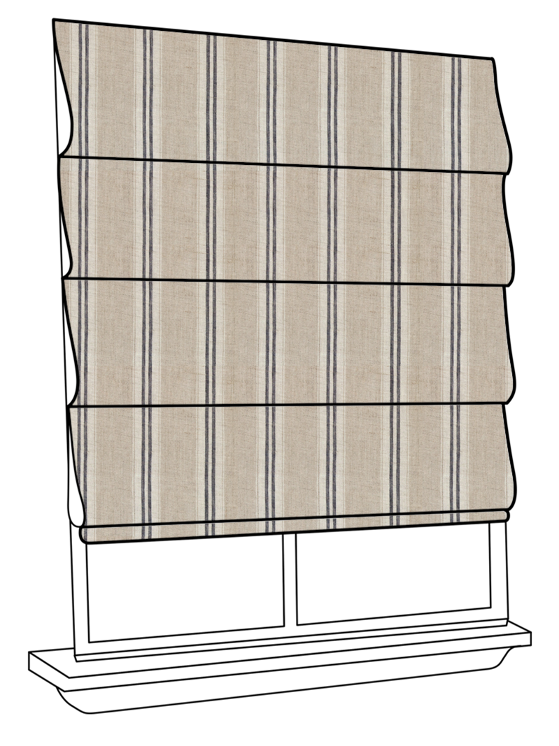Linen Navy Stripe is one of the most delicate amongst our fabrics. This fabric is extremely light in weight which allows for a beautiful drape. Relaxed by nature, use Linen Navy stripe to frame a coastal view.